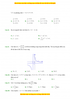 Họ các nguyên hàm của hàm số là A. . B. . C. . D. . Câu 25: Cho hàm số
