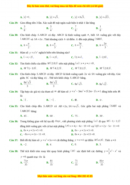 Đây là bản xem thử, vui lòng mua tài liệu để xem chi tiết (có lời giải)
