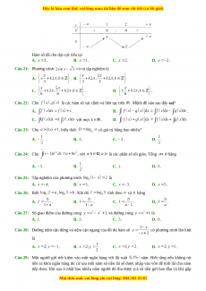 là các hàm số xác định và liên tục trên . Mệnh đề nào sau đây sai? A. . B. . C. với mọi . D. . Câu 23: Cho , biểu thức