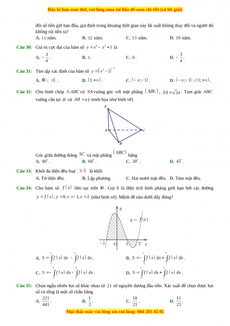 Đây là bản xem thử, vui lòng mua tài liệu để xem chi tiết (có lời giải)