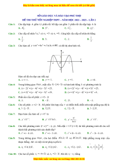 Đề thi thử Toán Sở Phú Thọ lần 2 năm 2023
