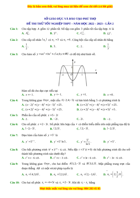 Đây là bản xem th , vu ử i lòng mua tài li u ệ đ xe ể m chi ti t ế (có l i ờ gi i ả ) SỞ GIÁO D C Ụ VÀ ĐÀO T O Ạ PHÚ THỌ Đ Ề THI TH Ử T T Ố NGHI P Ệ THPT – NĂM H C