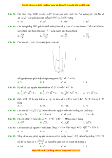 ợ tạo thành khi quay H xung quanh tr c ụ hoành bằng 32 512 32 512 A. . B. . C. . D. . 3 15 3 15 Câu 31: Cho hàm s