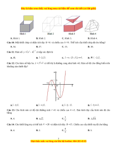 ử vui lòng mua tài li u ệ đ ể xem chi ti t ế (có l i ờ gi i) ả A. Hình 1. B. Hình 2. C. Hình 3. D. Hình 4. Câu 10: M t ộ kh i ố chóp có di n ệ tích đáy B 6 và chiều cao h 9 . Thể tích c a ủ kh i ố chóp đã cho bằng? A. 54. B. 27. C. 15. D. 18. Câu 11: Hàm s ố y x 3 2 4 có tập xác đ nh ị là A. . B. 2; 2 . C. ;