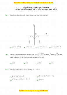 Đề thi thử Toán Sở Vĩnh Phúc lần 1 năm 2023