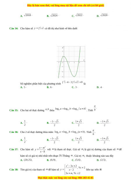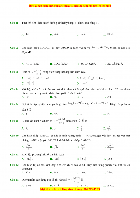 Đây là bản xem thử, vui lòng mua tài liệu để xem chi tiết (có lời giải)