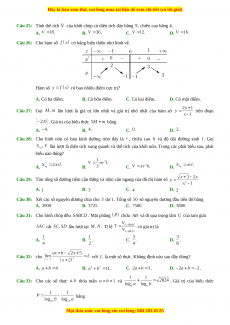 có bao nhiêu điểm cực trị? A. Có ba điểm. B. Có bốn điểm. C. Có hai điểm. D. Có một điểm. Câu 27: Gọi