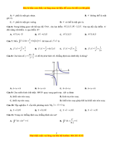 y x 4x 5 trên đoạn 1;2 là: A. 2 B. 3 C. 1 D. 5 Câu 2: Đ t ồ hị hì ở nh vẽ sau là đ t ồ hị c a ủ hàm s nà ố o? x 1 x 1 x 2x 3 A. B. C. D. x 1 x 1 x 1 2x 2 Câu 3: Biết hàm s ố y 4