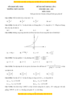 Đề thi thử Toán trường Chuyên Bắc Ninh năm 2021