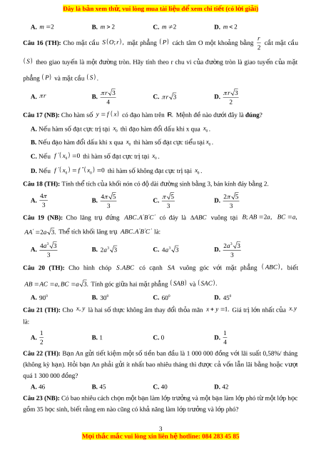 Đây là bản xem th , vu ử i lòng mua tài li u ệ đ xe ể m chi ti t ế (có l i ờ gi i ả ) A. m 2 B. m 2 C. m 2 D. m 2 r