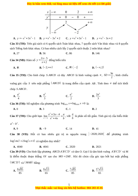 Câu 32 (VD): Hàm s nà ố o trong b n ố hàm s s ố au có bảng bi n t ế hiên nh hì ư nh v s ẽ au? 4 M i ọ thắc m c