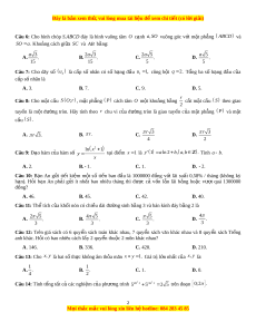 1 a ln 2 b, a,b . Tính a . b x A. 2. B. 1. C. 1. D. 2. Câu 10: Bạn An g i ử ti t ế ki m ệ m t ộ số ti n ề ban đ u ầ là 1000000 đ ng ồ v i ớ lãi su t