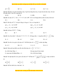 U d ,n * n 1 D. n n 1 n Câu 18: Gi i ớ hạn 2 lim 2n 1 bằng A. 2. B. . C. 0. D. . n 1 Câu 19: Cho s t ố nhi ự ên n th a ỏ mãn 0 1 2 C C C 1 1. S h ố ạng ch a ứ 7 bằng n n n x trong khai tri n ể 3 x 2 x A. 4. B. 7 12x . C. 7 9x . D. 7 4x . 2x 4 Câu 20: Tìm tất c c ả ác giá trị c a ủ tham s