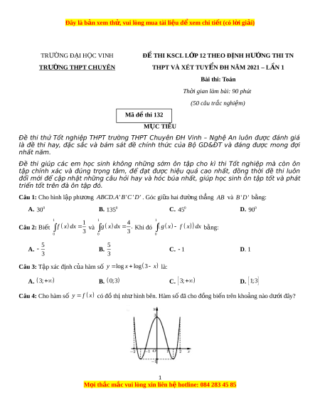 Đây là bản xem th , vu ử i lòng mua tài li u ệ đ xe ể m chi ti t ế (có l i ờ gi i ả ) TR N ƯỜ G Đ I H Ạ C Ọ VINH Đ Ề THI KSCL L P Ớ 12 THEO Đ N Ị H HƯ N Ớ G THI TN TRƯỜNG THPT CHUYÊN THPT VÀ XÉT TUY N