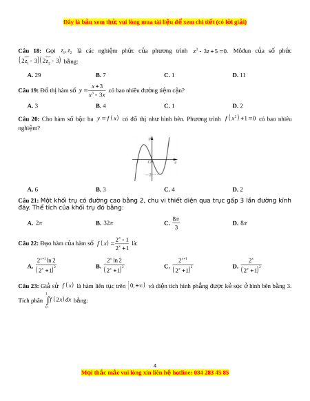 Đây là bản xem th , vu ử i lòng mua tài li u ệ đ xe ể m chi ti t ế (có l i ờ gi i ả ) Câu 18: G i ọ z , z 2 1 2 là các nghi m ệ ph c ứ c a ủ phư ng ơ