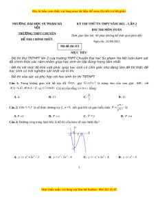 Ử TN THPT NĂM 2021 – L N Ầ 2 NỘI BÀI THI MÔN TOÁN TRƯ N Ờ G THPT CHUYÊN Th i