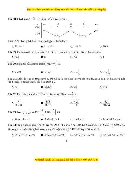 Đây là bản xem th , vu ử i lòng mua tài li u ệ đ xe ể m chi ti t ế (có l i ờ gi i ả ) Câu 18: Cho hàm s
