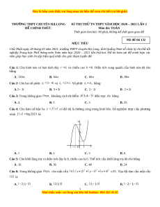 TRƯỜNG THPT CHUYÊN H LO Ạ NG KÌ THI TH Ử TN THPT NĂM H C Ọ 2020 – 2021 L N Ầ 2 Đ C Ề HÍNH TH C Ứ Môn thi: TOÁN Th i