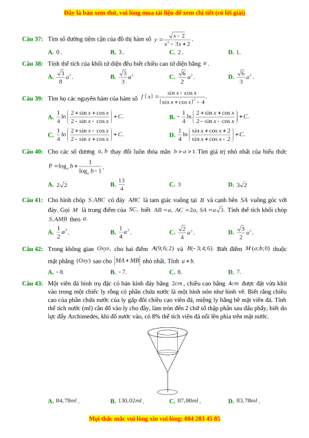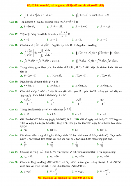 Đây là bản xem thử, vui lòng mua tài liệu để xem chi tiết (có lời giải)