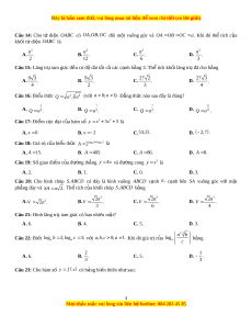 y x 3x 3 là A. x 0 B. x 2 C. 0;3 . D. 2;7 . Câu 18: Giá trị c a ủ bi u t ể h c ứ log4 9log2 5 A 2 là A. A 1 5. B. A 405. C. A 8 6. D. A 8. Câu 19: S gi ố ao điểm c a ủ đư ng t ờ hẳng y 4 x và đư ng c ờ ong 3 y x là A. 2. B. 1. C. 0. D. 3.