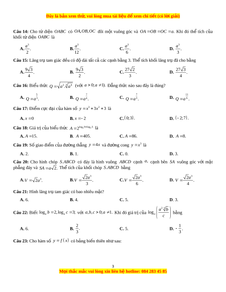Đây là bản xem th , vu ử i lòng mua tài li u ệ đ xe ể m chi ti t ế (có l i ờ gi i ả ) 3 a 3 3 a 3 3 a 3 3 a 3 A. . B. . C. . D. . 12 4 2 6