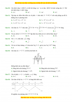 Câu 15: Với các số thực dương thỏa mãn , giá trị của bằng A. 8. B. 6. C. 3. D. 5. Câu 16: Cho hàm số