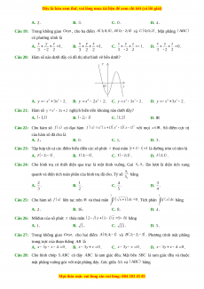 quanh và diện tích toàn phần của hình trụ đã cho. Tỷ số bằng A. . B. . C. . D. . Câu 25: Cho hàm số