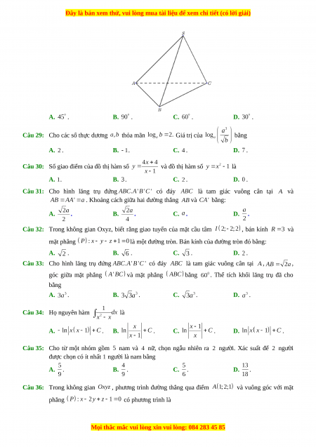 Câu 36: Trong không gian