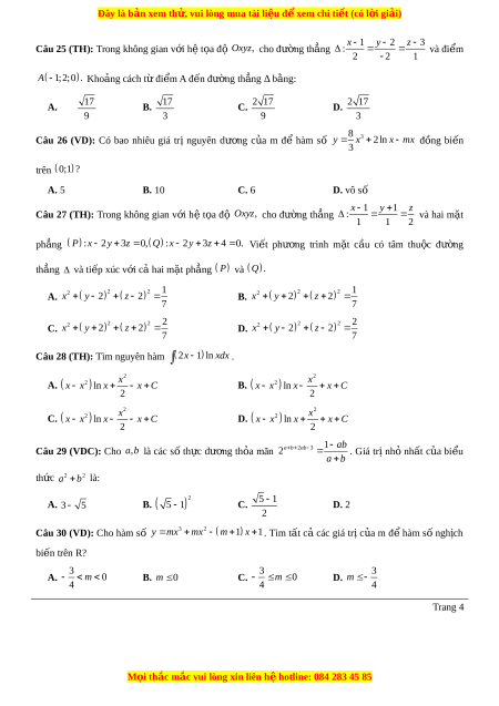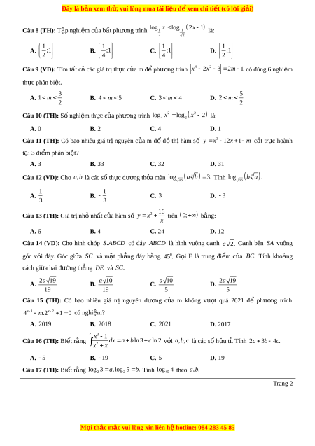 Câu 17 (TH): Biết rằng log 3 a , log 5 . b log 4 a b 2 2 Tính 45 theo , . Trang 2 M i ọ thắc m c