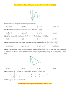 , tam giác ABC vuông t i ạ B, AB a 2 và BC a (minh h a ọ hình vẽ bên dư i ớ ). Góc gi a ữ đư ng ờ th ng ẳ SC và mặt ph ng ẳ ABC bằng: A. 0 45 B. 0 30 C. 0 90 D. 0 60 Câu 7: Cho hàm s