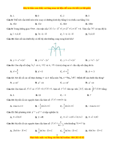 3 . Khi đó f ' x dx bằng: 2 A. 3. B. 10 C. 3 D. 7 Câu 14: H t