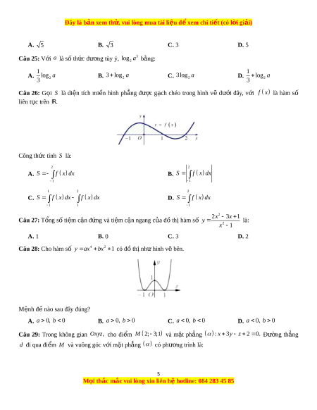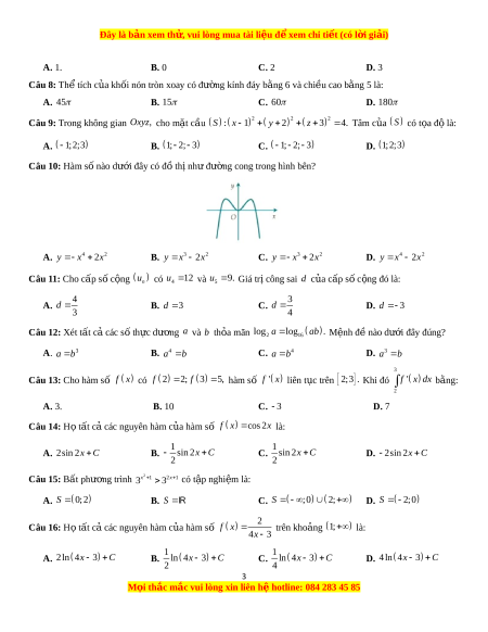 Đây là bản xem th , vu ử i lòng mua tài li u ệ đ xe ể m chi ti t ế (có l i ờ gi i ả ) A. 1. B. 0 C. 2 D. 3 Câu 8: Thể tích c a ủ kh i