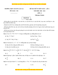 Đề thi thử Toán trường Chuyên Lào Cai năm 2021