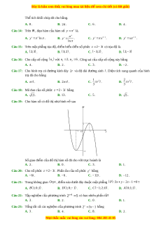 Trong không gian Oxyz, đư ng ờ thẳng d : có m t ộ vectơ chỉ phư ng l ơ à 2 1 2 A. u 2; 1; 2 . B. u 1; 2; 3 . C. u 1; 2; 3 . D. u 2;1; 2 . Câu 3: Đạo hàm c a ủ hàm số y co s x trên là A. y ta n x . B. y s in x .