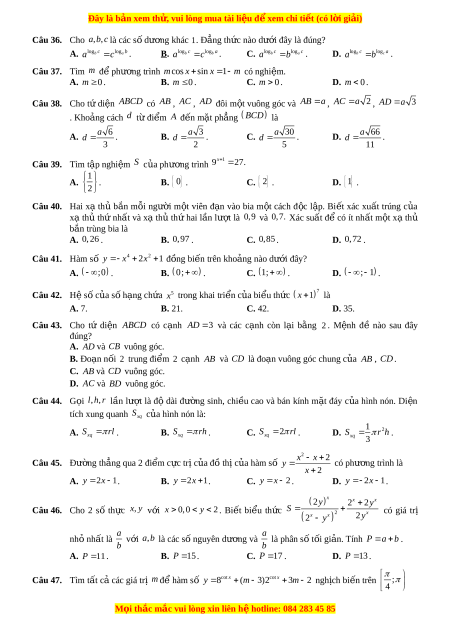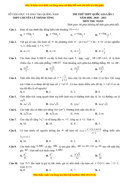 Đây là bản xem th , vu ử i lòng mua tài li u ệ đ xe ể m chi ti t ế (có l i ờ gi i ả ) S G Ở IÁO D C Ụ VÀ ĐÀO T O Ạ QU N Ả G NAM THI TH Ử THPT QU C Ố GIA L N Ầ 1