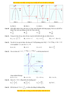ờ gian: 90 phút (Không k t ể h i ờ gian phát đ ) ề Câu 1. Hàm s nà ố o dư i ớ đây đ ng bi ồ n ế trên kho ng ả 0; ? y l og x A. y l og x y x y l og x 3 . B. log e . C. 2 . D. 2 2 . e 3 Câu 2. V i ớ giá trị nào c a