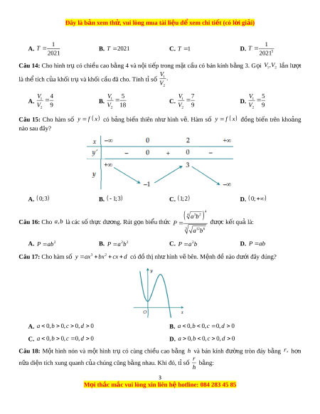 Đây là bản xem th , vu ử i lòng mua tài li u ệ đ xe ể m chi ti t ế (có l i ờ gi i ả ) 1 1 A. T B. T 20 21 C. T 1 D. T 2021 5 2021