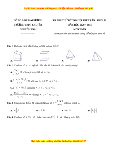 ớ đây không phải là hình đa di n? ệ A. B. C. D. Câu 2: Cho hàm s