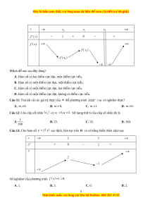 Đây là bản xem th , vu ử i lòng mua tài li u ệ đ xe ể m chi ti t ế (có l i ờ gi i ả ) M nh đ ệ ề nào sau đây đúng? A. Hàm s c ố ó hai đi m ể c c ự đại, m t ộ đi m ể c c ự ti u. ể B. Hàm s c ố ó m t ộ đi m ể c c ự đ i ạ , m t ộ đi m ể c c ự ti u. ể C. Hàm s c ố ó m t ộ đi m ể c c ự đ i ạ , hai đi m ể c c ự ti u. ể D. Hàm s c ố ó m t ộ đi m ể c c ự đ i ạ , không có đi m ể c c ự ti u. ể