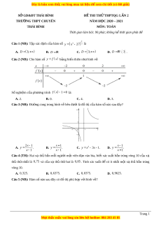 Đề thi thử Toán trường Chuyên Thái Bình năm 2021