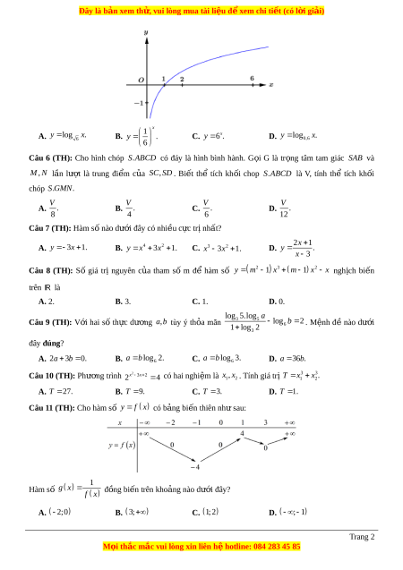 ố chop S.ABCD là V, tính thể tích kh i ố chóp S.GMN. V V V V A. . B. . C. . D. . 8 4 6 12 Câu 7 (TH): Hàm s nà ố o dư i ớ đây có nhi u c ề c ự trị nh t ấ ? 2x 1