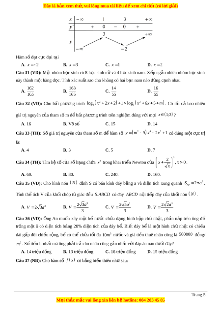 ố y f x bảng biến thiên như nhau: Trang 4 M i ọ thắc m c