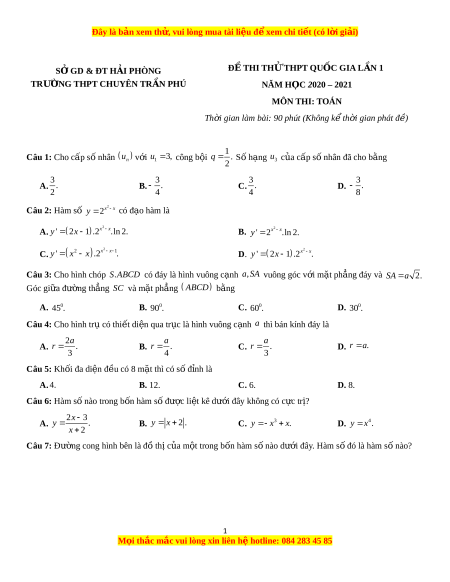 Đây là bản xem th , vu ử i lòng mua tài li u ệ đ xe ể m chi ti t ế (có l i ờ gi i ả ) SỞ GD & ĐT H I Ả PHÒNG Đ Ề THI TH Ử THPT QU C Ố GIA L N Ầ 1