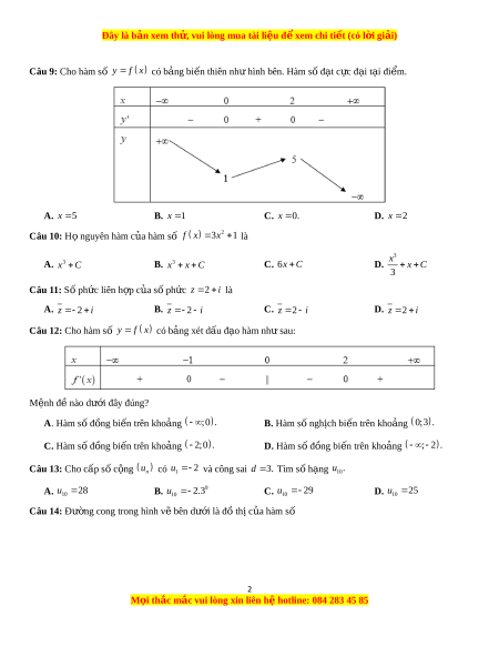 Đây là bản xem th , vu ử i lòng mua tài li u ệ đ xe ể m chi ti t ế (có l i ờ gi i ả ) Câu 9: Cho hàm s