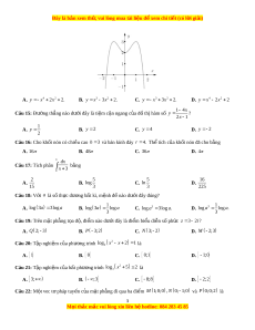 ế rên khoảng 2;0 . D. Hàm s đ ố ng ồ bi n t ế rên khoảng ; 2 . Câu 13: Cho cấp s c ố ng ộ u u 2 u . n có 1 và công sai d 3 . Tìm s h ố ạng 10 A. u 2 8 u 2.3 u 29 u 2 5 10 B. 9 C. D. 10 10 10 Câu 14: Đư ng c ờ ong trong hình v bê ẽ n dư i ớ là đ t ồ hị c a ủ hàm số 2 M i