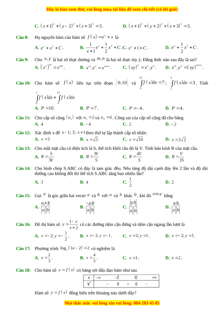 C. . D. . Câu 8: