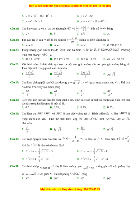 Đây là bản xem thử, vui lòng mua tài liệu để xem chi tiết (có lời giải)