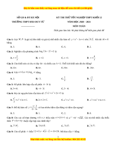 Đề thi thử Toán trường Đào Duy Từ năm 2021