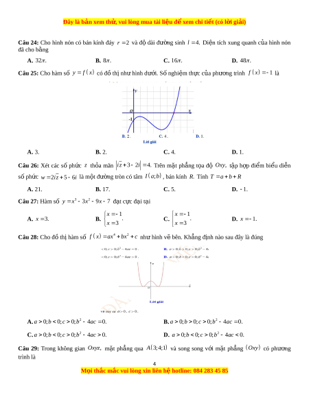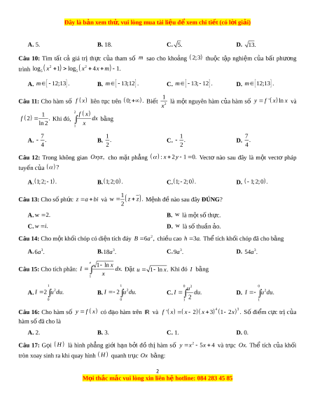 Đây là bản xem th , vu ử i lòng mua tài li u ệ đ xe ể m chi ti t ế (có l i ờ gi i ả ) A. 5. B. 18. C. 5. D. 13. Câu 10: Tìm t t ấ cả giá trị th c ự c a