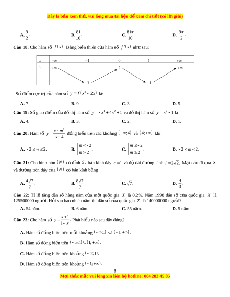 Đây là bản xem th , vu ử i lòng mua tài li u ệ đ xe ể m chi ti t ế (có l i ờ gi i ả ) 9 81 81 9 A. . B. . C. . D. . 2 10 10 2 Câu 18: Cho hàm s